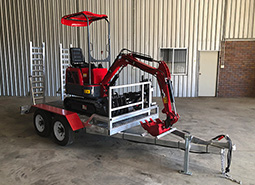Rates include: 2.3 ton mini excavator on super duty trailer (blue tooth brake controller included on trailer), 600mm bucket, 400 mm bucket with teeth, 200mm bucket with teeth, quick hitch. Tow weight 3200 kg